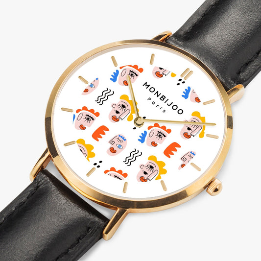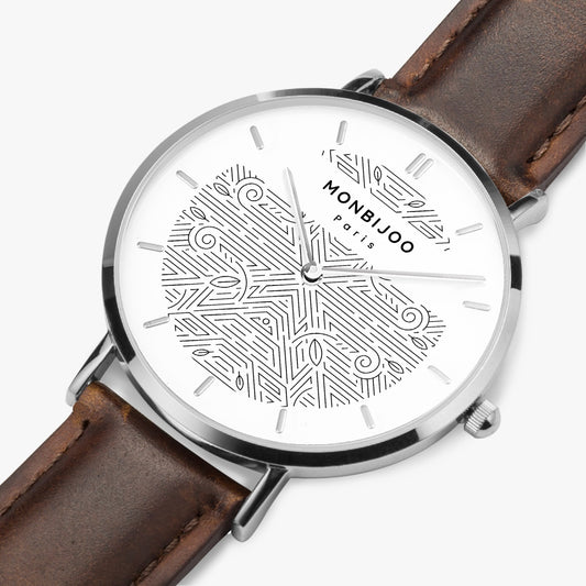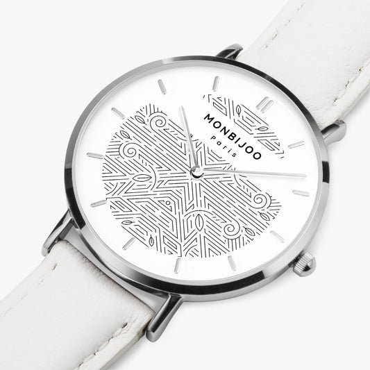 Montre Femme Twilight Cadran Pikas Bracelet Cuir Blanc
