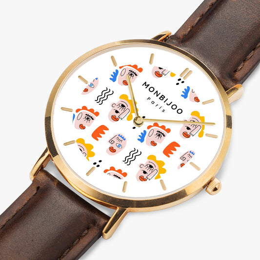 Montre Femme Twilight Cadran Pikas Bracelet Cuir Marron