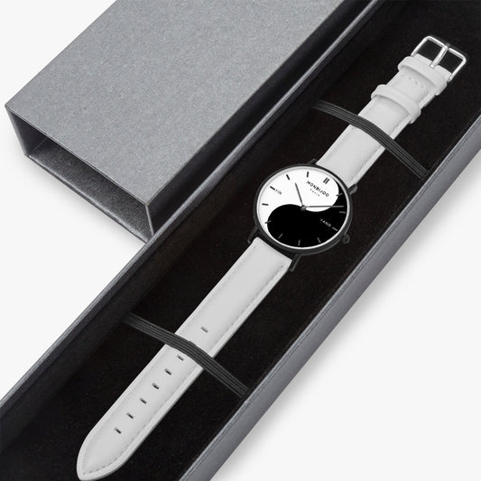 Montre Femme Eclipse Cadran Yin Yang Bracelet Cuir Blanc